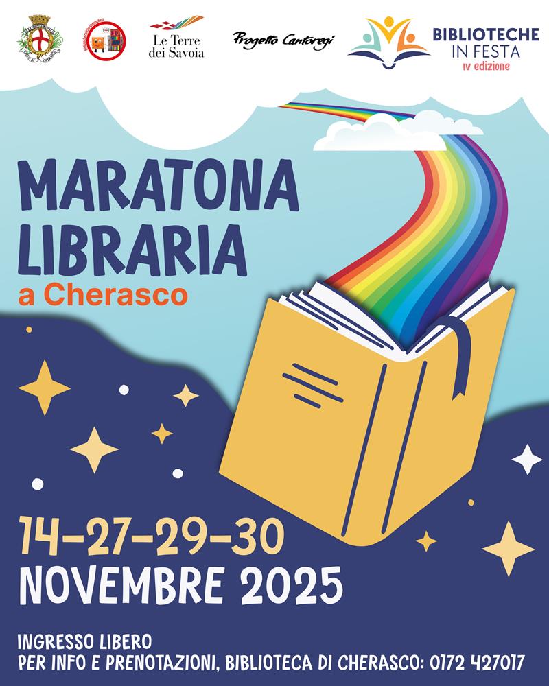Cherasco si prepara ad accogliere la Maratona Libraria, un evento culturale unico nel suo genere organizzato dalle Biblioteche cheraschesi nell’ambito del progetto “Biblioteche in Festa 2025": un progetto promosso dalle Terre dei Savoia e dall'associazione Progetto Cantoregi per celebrare e valorizzare il ruolo delle biblioteche, coinvolgendo sia i cittadini che gli operatori del settore. L'iniziativa combina eventi culturali aperti al pubblico (come incontri con autori) con attività strategiche che mirano a rafforzare la collaborazione tra le biblioteche e a definire il futuro dei servizi bibliotecari. Si propone come un’occasione di incontro, partecipazione e scoperta, aperta a tutti gli amanti dei libri.